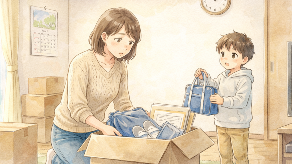 また、子どもの学用品や入学関連書類は段ボールに入れず、手元で管理することをおすすめします。